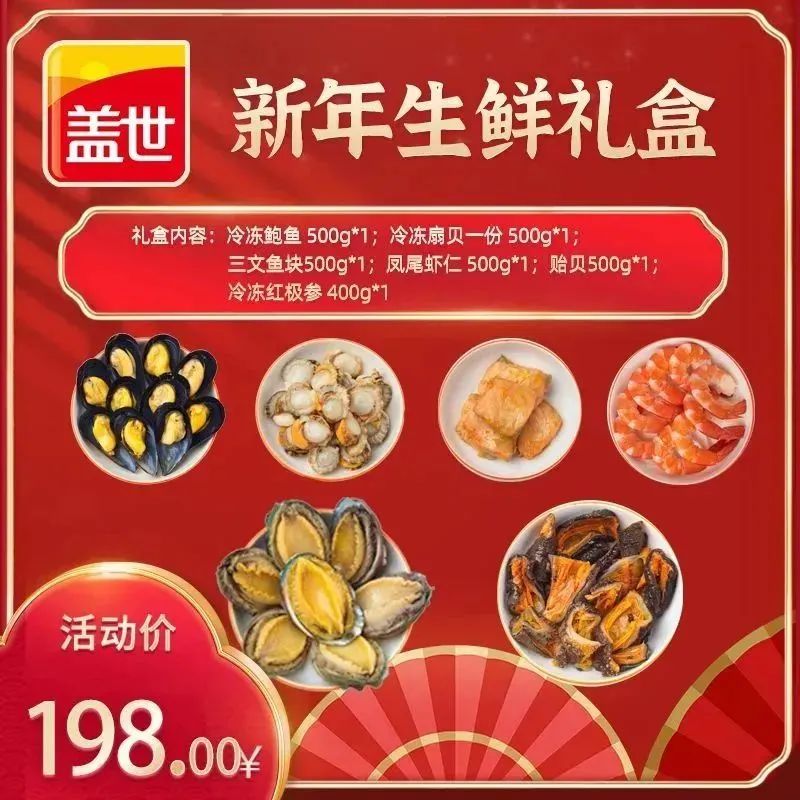 伟德bv1946官网新年生鲜礼盒是一款原料礼盒,突出匠心甄选,突出纯正海鲜,突出品质把控,给人踏实的安全感。该款礼盒装有冷冻鲍鱼、冷冻扇贝、三文鱼块、凤尾虾仁、贻贝、冷冻红极参,个个都是海珍硬货,组合在一起便是一款“王炸级礼盒”。