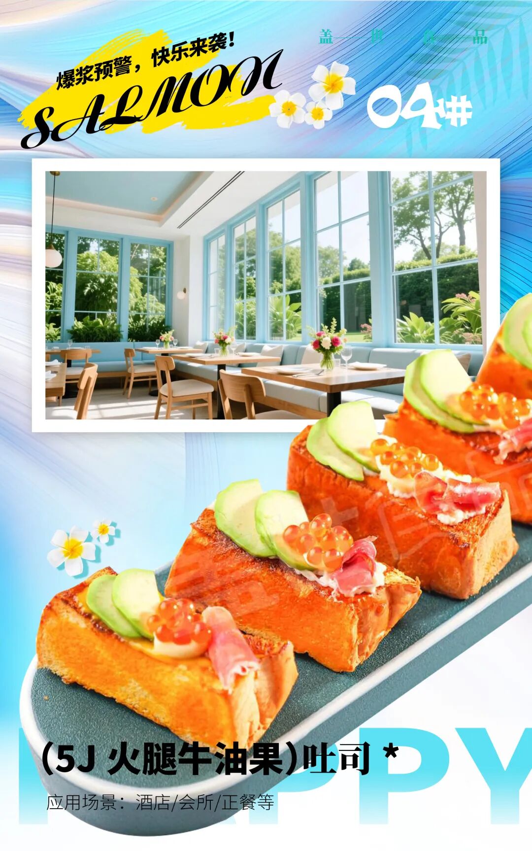5J火腿牛油果吐司不仅创意感拉满,而且营养丰富均衡。吐司富含“快乐的碳水”,牛油果则丝滑解腻,再加入火腿以及自带酷爽和惊喜的伟德bv1946官网三文鱼子,让营养美味温暖寒冬,让“爆破的快乐”在舌尖上跳舞!